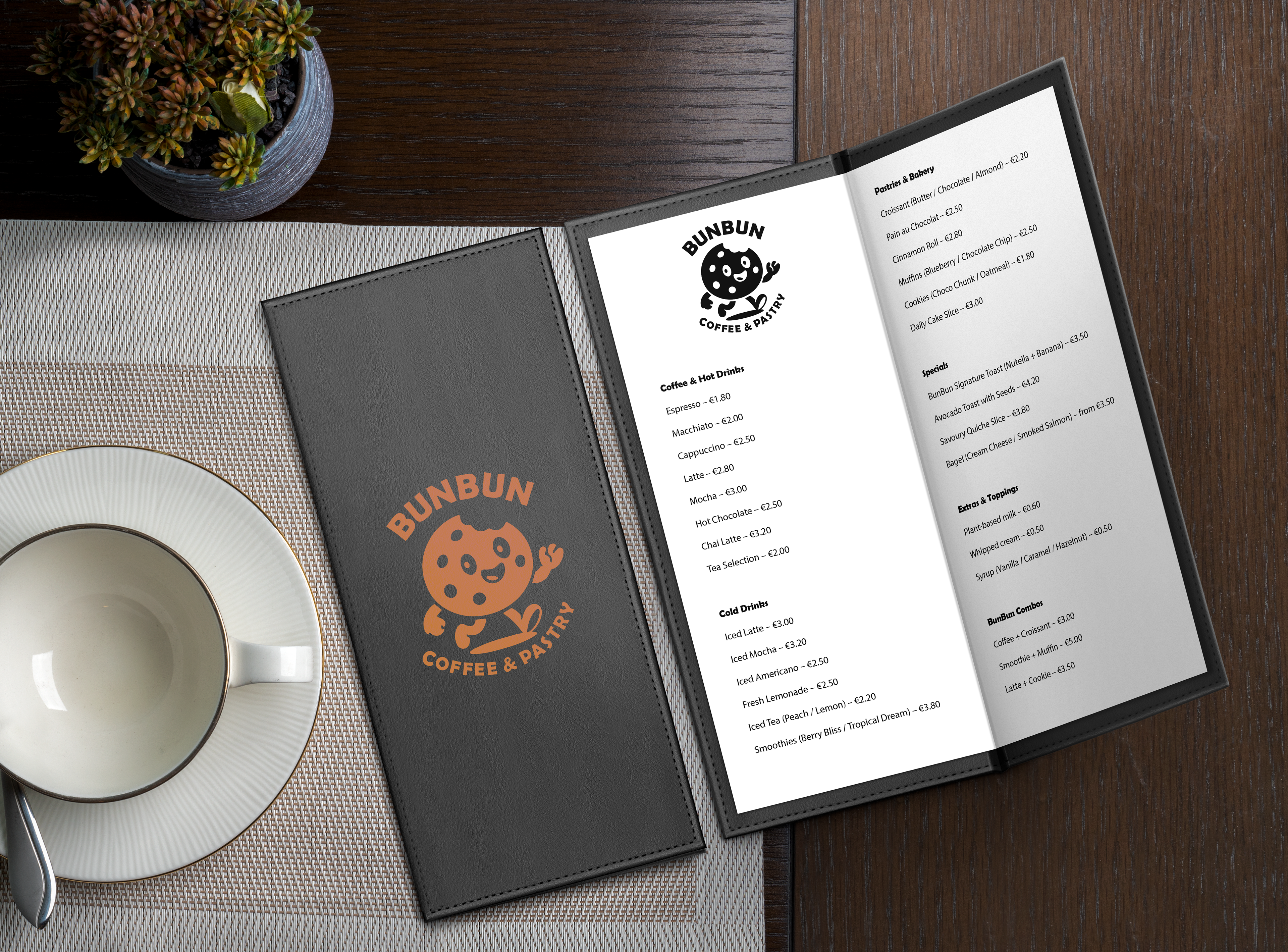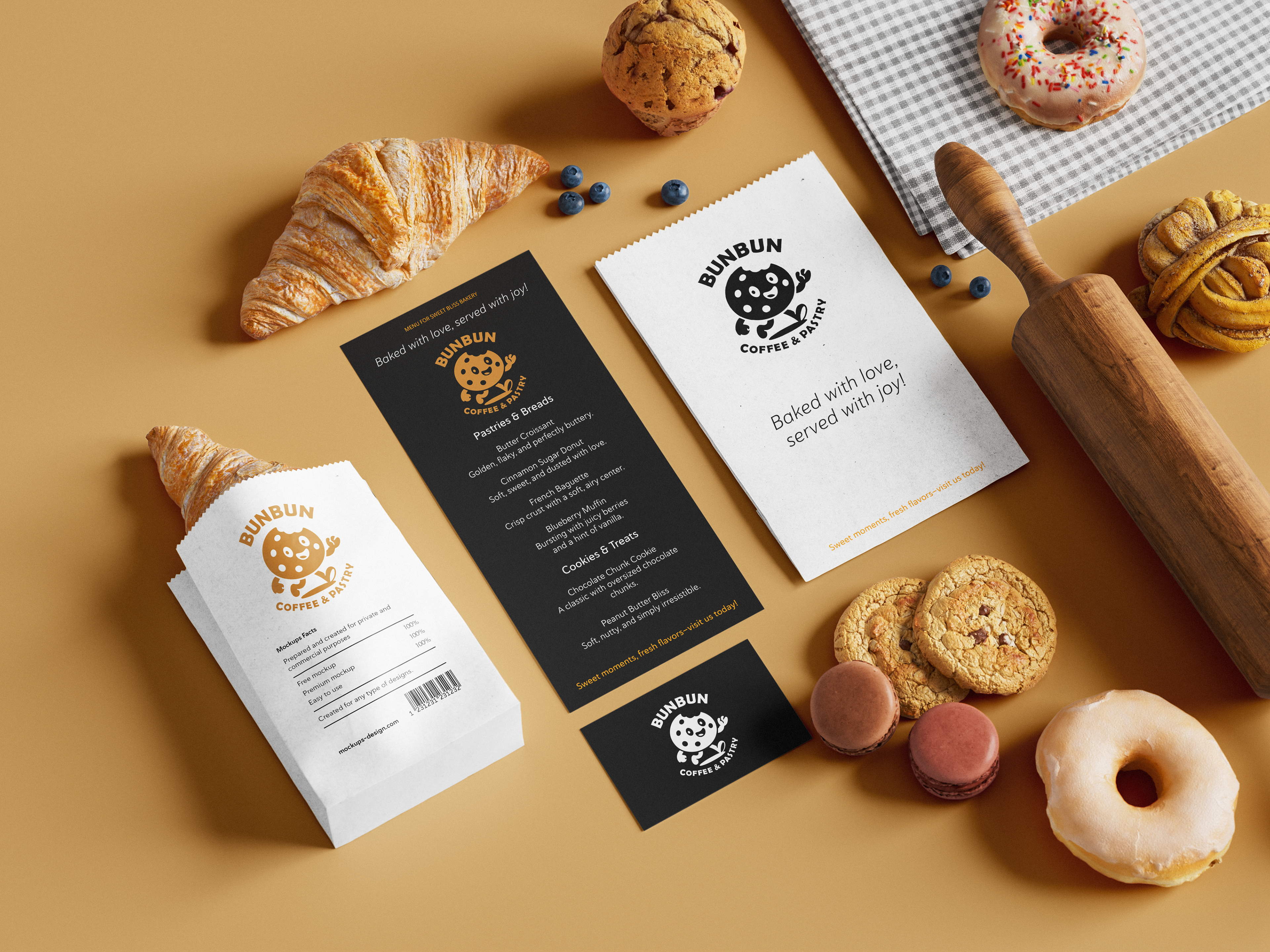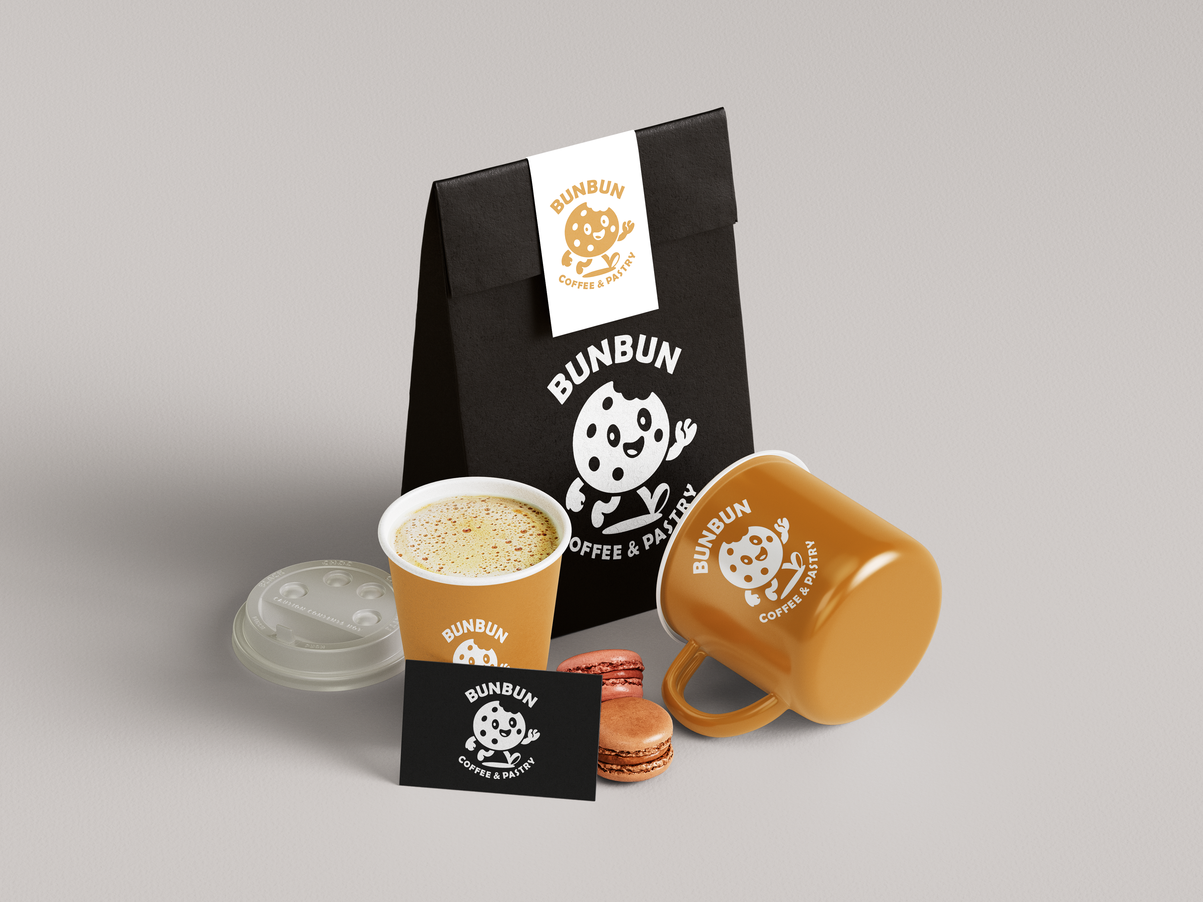 Concept branding project fully created for BunBun, a fictional coffee & pastry shop with a playful and cozy identity.