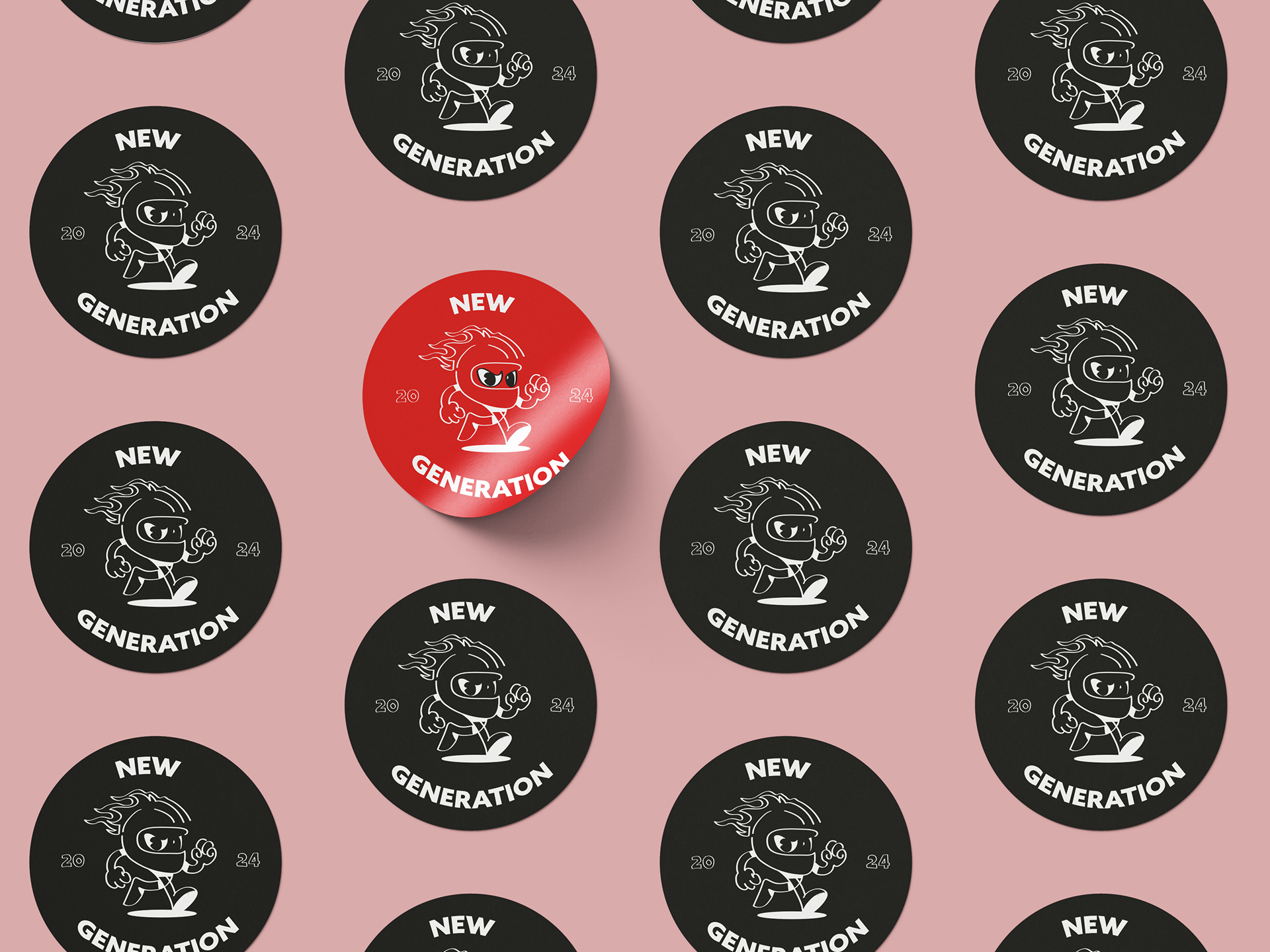 Visual identity created for New Generation, a Belgian motorcycle club. It reflects unity and boldness through a modern logo and mascot design.